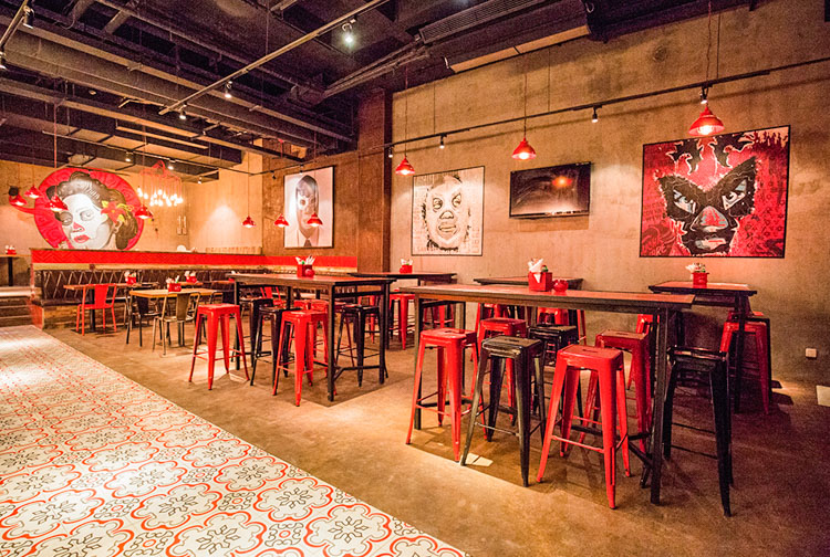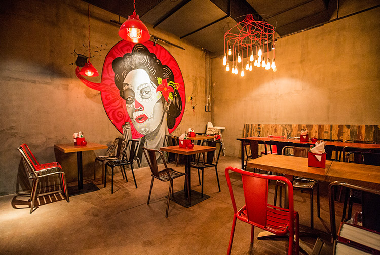 妖艳的红色主调、浓烈且具有艺术感的壁画,组成了这家魅惑人心的墨西哥餐吧。一进门,就能深切地感受到墨西哥式的热情和妩媚。