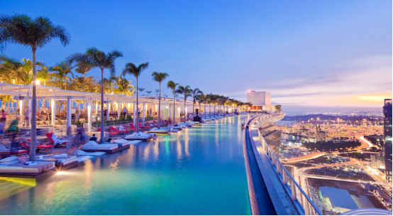 耗资800亿美元,总面积12000平方米的滨海湾金沙酒店(Marina Bay Sands)是新加坡最值得入住的酒店。57层的独特船型大楼拥有世界上最大的无边泳池和空中花园。无边界的泳池让人仿佛置身海天交界处,入住酒店才能畅玩此番华丽体验。