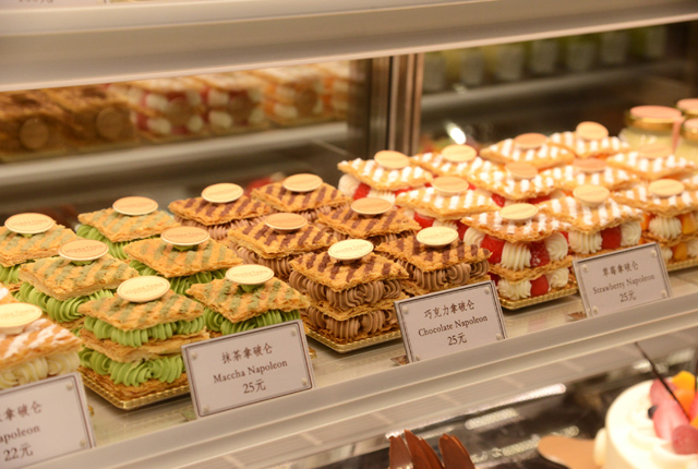 迷你版拿破仑自然是招牌,店里有多种口味可供选择。每一张拿破仑酥皮严格制作72小时以上,香浓酥脆奶香四溢,搭配动物奶油轻盈柔滑,甜而不腻。人气单品栗子蛋糕,精选绵密甘甜的优质栗子蓉,精心装饰成面条形状,内部奶油、蛋糕胚、栗子蓉、蒙布朗脆片共7层口感,更是不吝成本地加入大块糖水栗子。还有茶歇蛋糕品类繁多,原味布丁蛋糕、迷你瑞士卷等,看你所好,总有最符合你口味的一款!