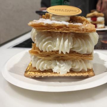 蛋糕是在透明操作间现做的,去的比较早等了一会儿才等到了草莓拿破仑,小小的非常精致。酥皮值得夸,层次丰富但是非常酥脆,香味浓郁,就是草莓的用量太少了!不如直接吃原味拿破仑了。价格很良心,下一次再去尝一下布丁蛋糕